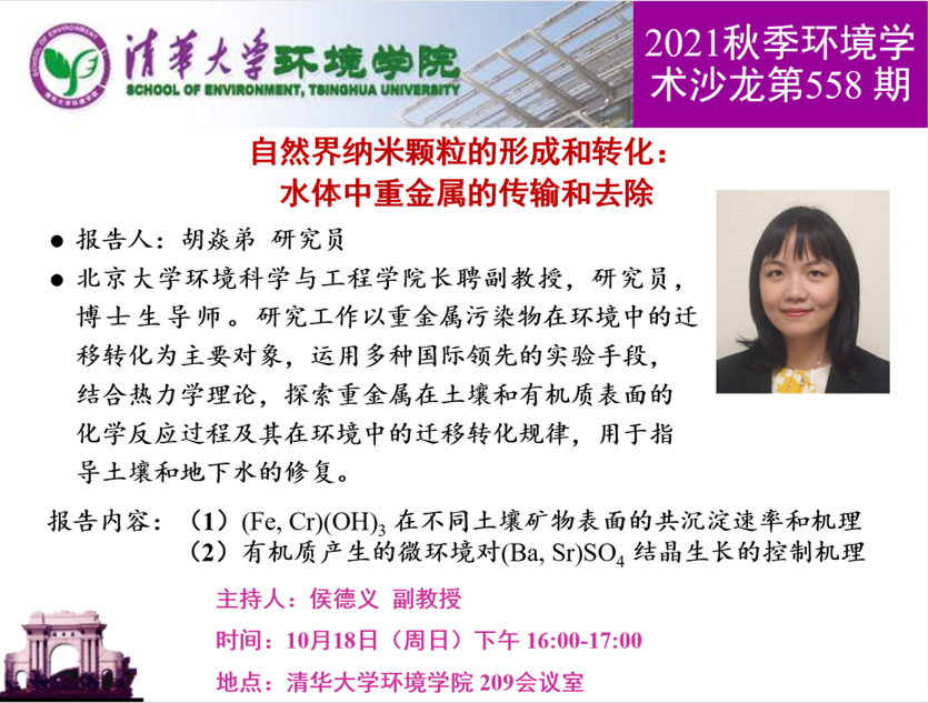 报告题目:自然界纳米颗粒的形成和转化:水体中重金属的传输和去除