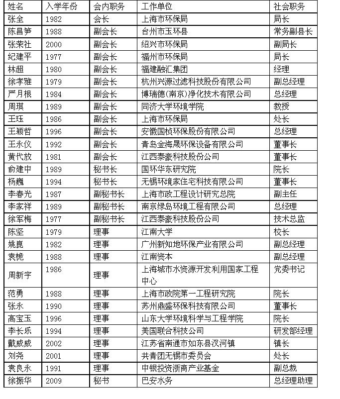 欢迎从事环保相关行业校友加入环境学院校友会!有兴趣者请与俞建中秘书长(13311887632,13311887632@189.cn)或杨巍秘书长18616564475,yangwei1994@tsinghua.org.cn)联系。