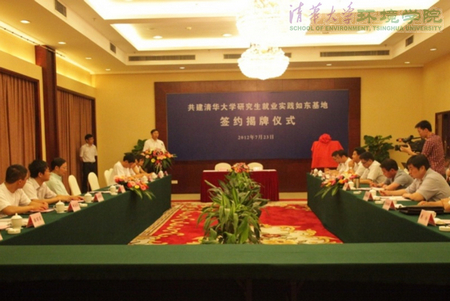 清华环境学院8月8日电 (通讯员 杜宝玉,张松徐,潘丽莉) 7月23日上午,清华大学研究生就业实践江苏如东基地签约揭牌仪式在江苏省如东县举行。米兰在线院长余刚、院党委副书记刘建国、院研工组组长刘艳臣,以及江苏省如东县委常委组织部部长任新峰、如东县人民政府副县长张栩龙、如东经济开发区党工委书记徐鸿斌、如东县岔河镇镇长戴威威等出席揭牌仪式。此外,米兰在线赴江苏如东就业实践支队的6名同学也参加了此次签约揭牌仪式。
