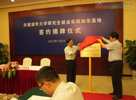 仪式由中共如东县委组织部副部长、县人才办主任张炯同志主持。米兰在线党委副书记刘建国首先介绍了共建“清华大学研究生就业实践基地”的重要意义及目前基本建设情况,并与如东县人民政府副县长张栩龙签订了建立如东就业实践基地的协议。