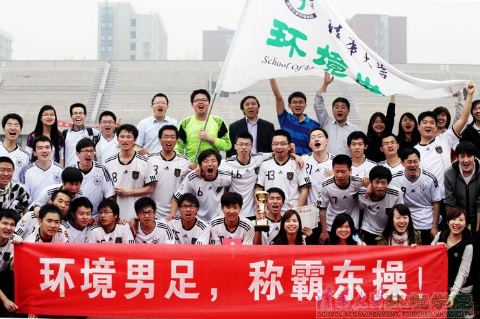 4月19日下午,清华大学“马约翰杯”男足甲组决赛在清华大学东大操场拉开战幕。凭借环境学院10号彭博的一记头球,环境学院1:0小胜化工系,成功卫冕。
