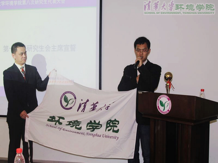清华大学研究生会副主席郝琛代表校研会主席团致辞,在肯定环境研会一年来工作的同时,希望环境研会继续秉持“最贴心最透明”的理念,不断创新形式,服务同学。北京大学环境院系的同学代表兄弟院校研究生会致辞,希望我校环境学院的研究生在北京高校环境联盟中发挥更大的作用。