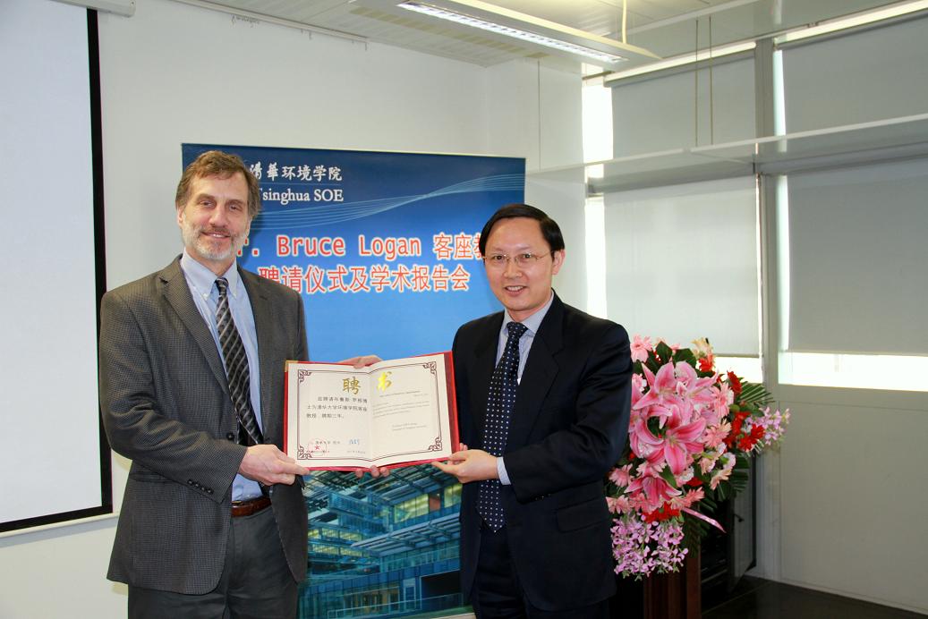 3月20日下午,美国宾州州立大学环境工程研究所所长、氢能中心主任布鲁斯·罗根(Bruce Logan)教授受聘担任米兰在线客座教授。环境学院院长余刚为罗根教授颁发聘书。仪式后,罗根教授做客环境学院学术委员会主办的清华大学环境论坛,为大家做题为“微生物电化学技术与盐度梯度能量结合的应用前景”(Microbial Electrochemical Technologies (METs) Meet Salinity Gradient Energy)的精彩报告。
