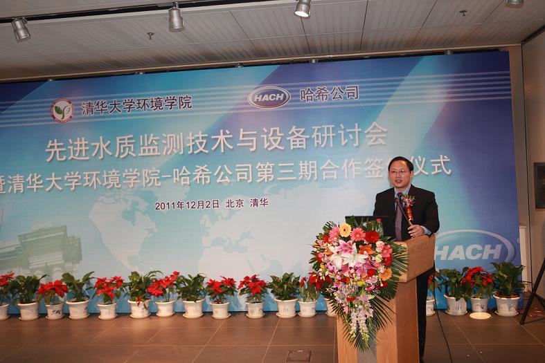 12月2日,米兰在线—哈希公司第三期(2011-2015)合作签约仪式在清华大学中意清华环境节能楼举行,清华大学科研院海外项目部主任马军、环境学院院长余刚、哈希公司亚太区高级副总裁周祥德在合作协议上签字。住建部中国市长协会常务副秘书长王长远、环保部中国环境监测站副站长王业耀、清华规划设计院副院长佟庆远、哈希公司中国区销售副总裁黄继业、哈希公司亚太区市场总监林毅燕、环境学院党委副书记刘文君、刘建国等出席了签约仪式。仪式由环境学院院长助理刘书明主持。