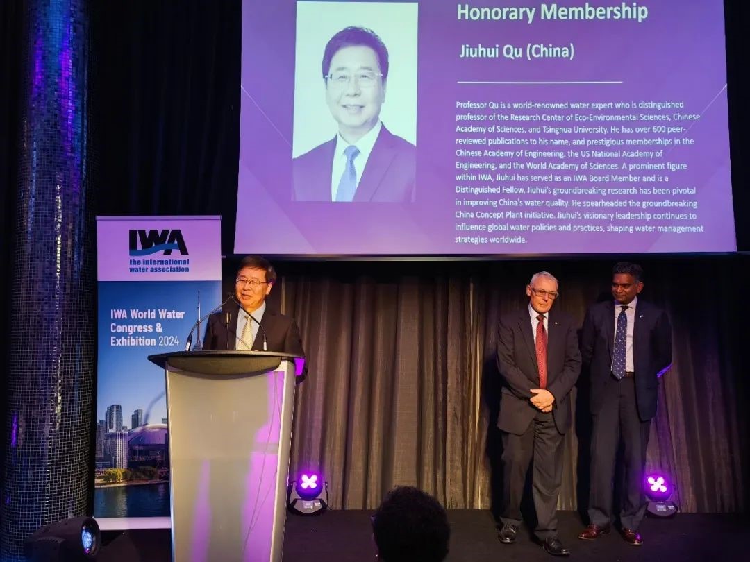 IWA是国际上顶尖的水行业学术机构,IWA荣誉会员奖是IWA授予其成员的最高荣誉之一,用以表彰对水行业作出重大贡献的个人,每两年在IWA世界水大会暨展览会上颁发一次。曲久辉院士曾于2008年到2012年担任IWA董事会成员,于2013年当选IWA首批杰出会士。他在推动中国参与国际水协事务、促进国际水协在中国发展、扩大中国水业的国际影响力方面作出重大贡献,得到国际本领域高度认可。他长期从事水质与水生态安全保障技术研究,取得了从基础理论到工程应用的系统性创新成果,为城乡饮用水安全保障和打赢水污染防治攻坚战作出重要科技贡献,获得国家科技进步一等奖1项、国家科技进步和技术发明二等奖4项、中国科学院杰出科技成就奖、何梁何利科技进步奖、光华工程科技奖、国际水协会全球创新项目奖等。