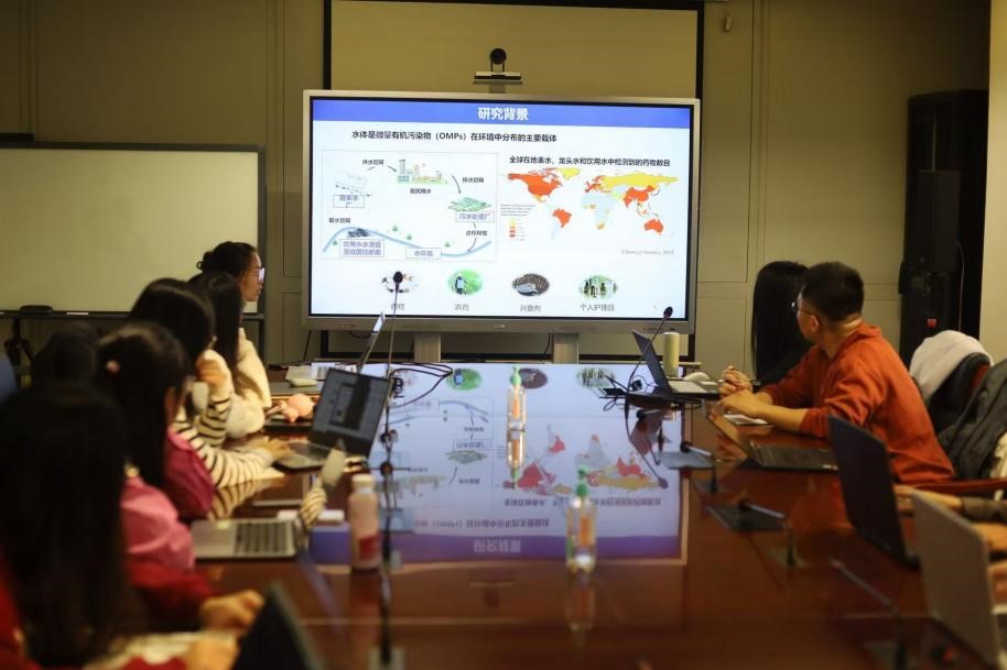 参与课题四研究工作的米兰在线2020级博士生郭柯卉分享了药物类污染物在污水处理厂中迁移转化和风险评估的相关研究进展,通过对疫情爆发前后污水厂污水和污泥的采样分析,明晰了药物类污染物的赋存特征、去除机制、水固相分配规律、足迹解析和风险评估。基于现场调查结果和项目需求,郭柯卉分享了下阶段的研究计划。